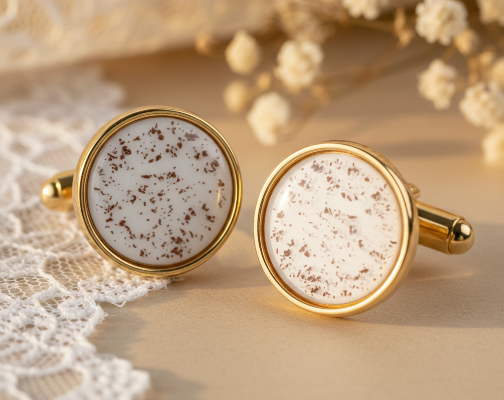 Los gemelos tienen un acabado pulido y clásico. El espacio para la leche materna es sutil. Aportan un toque de distinción a cualquier traje o camisa.